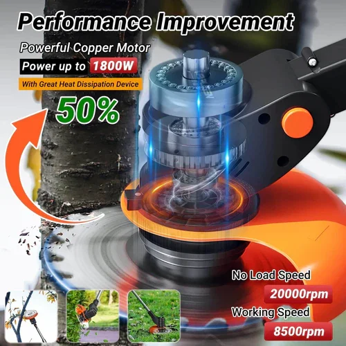 Lawn mower with 1800W high-power brushless motor and cutting speed up to 18000 rpmchạy êm và không rung. Kết hợp hiệu quả tối đa và dễ sử dụng.